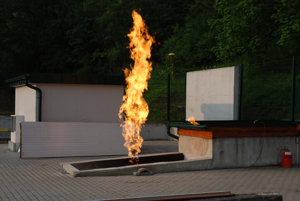 Zündung der offenen Flamme in einem Graben und in einer gasgefüllten Kammer